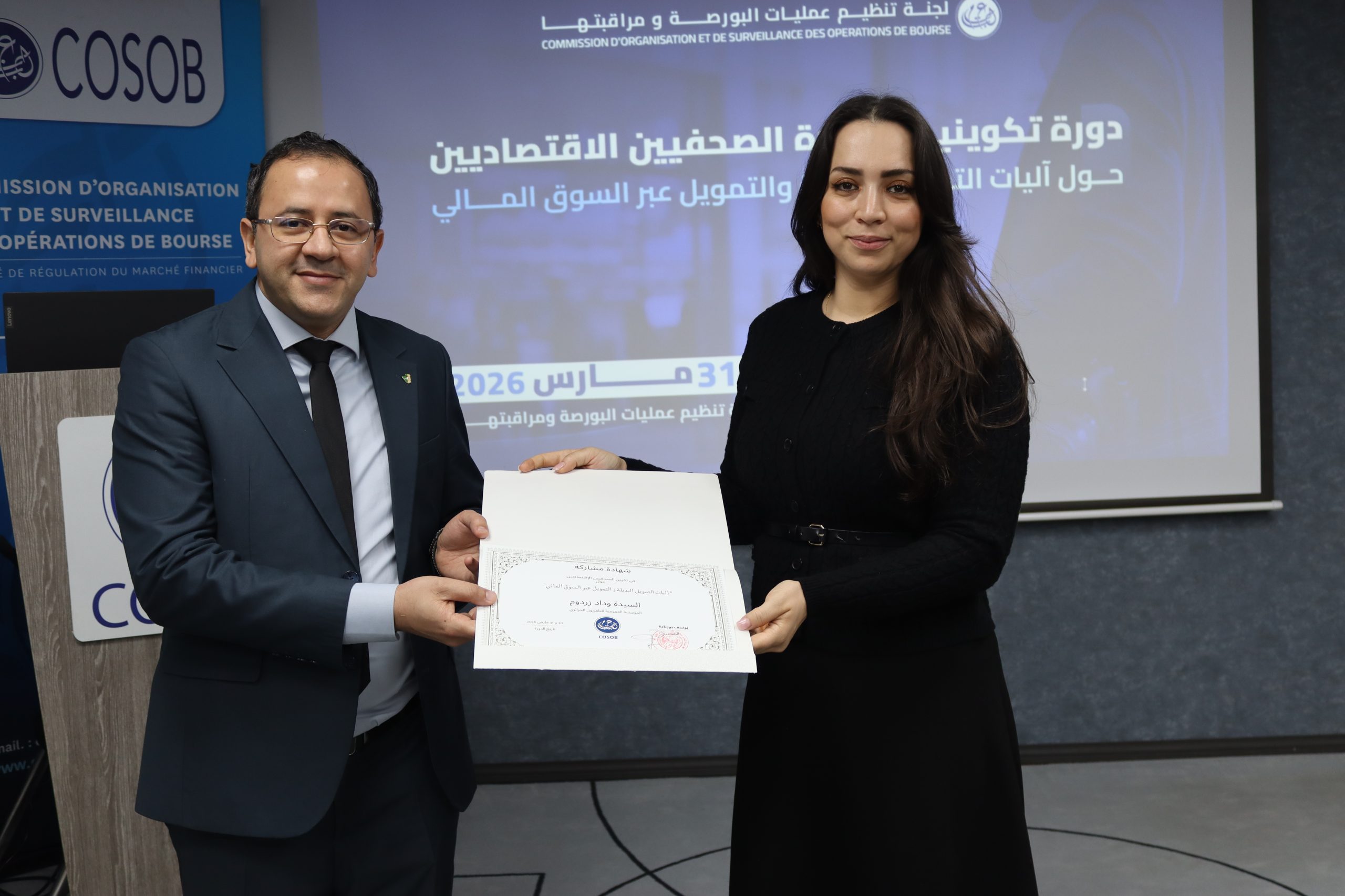 ضمن مساعيها الرامية إلى تعزيز الثقافة المالية وتطوير التغطية الإعلامية المتخصصة، نظّمت لجنة تنظيم عمليات البورصة ومراقبتها، يومي 30 و31 مارس 2026 بمقرها، دورة تكوينية مجانية لفائدة الإعلاميين المختصين في الشأن الاقتصادي.